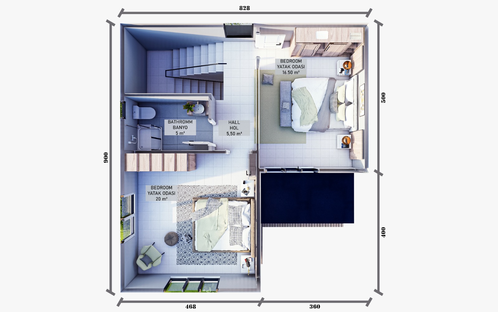 101 m²’lik 2+1 dubleks çelik ev modeli, küçük ama işlevsel yaşam alanları arayanlar için modern bir çözüm sunar. Alt katta geniş bir salon, mutfak ve banyo yer alırken; üst katta iki yatak odası ve balkon alanı bulunur. Akıllı plan yerleşimiyle kompakt bir alanda maksimum yaşam konforu sağlar. Geniş pencereleriyle gün ışığını içeri taşır, estetik cephe tasarımıyla da bulunduğu ortama zarif bir görünüm kazandırır. Yazlık, dağ evi veya şehir dışında kalıcı konut olarak ideal bir tercihtir.