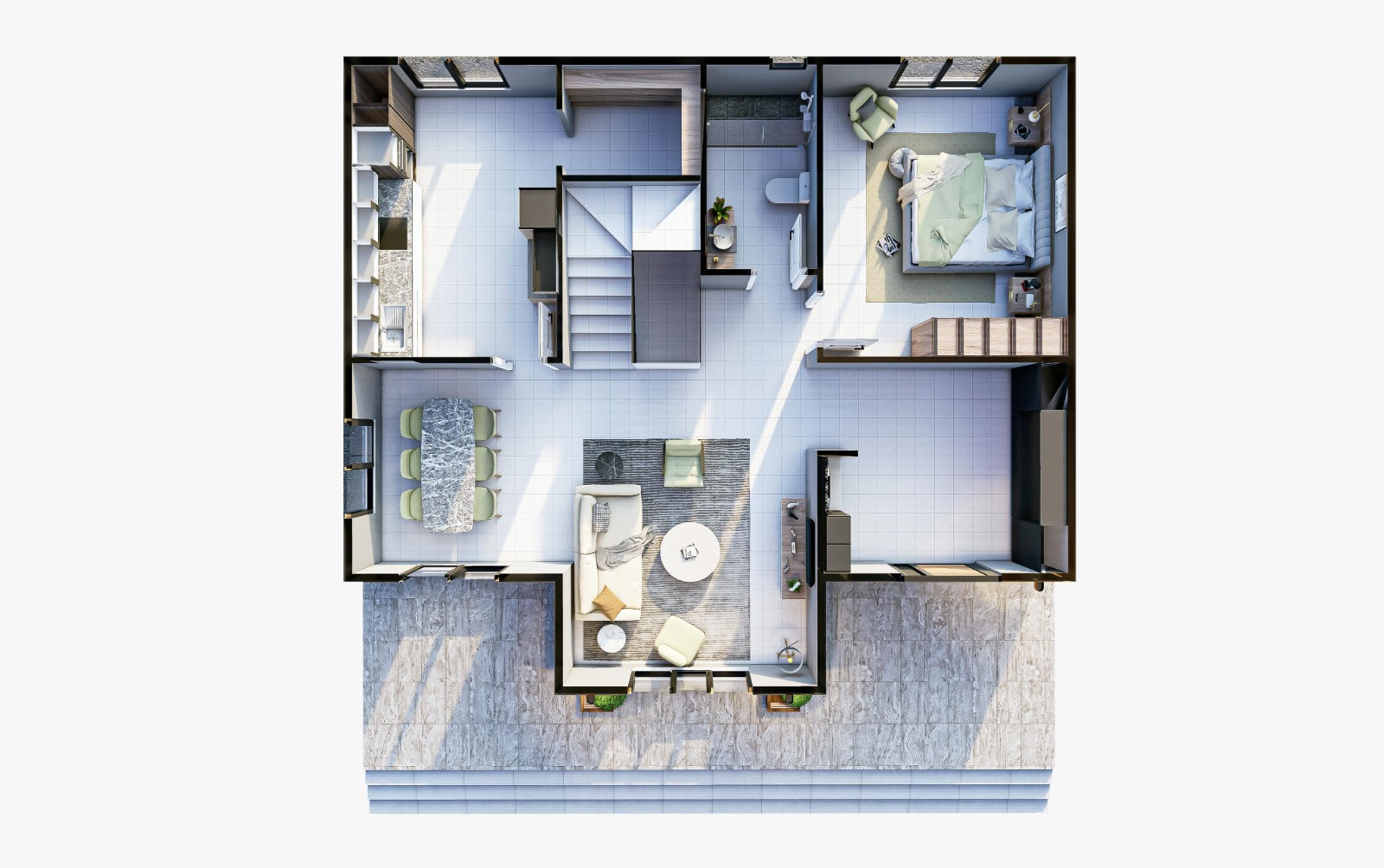 Çelik taşıyıcı sistem, bu modelin kalbini oluşturur. Galvanizli çelik profillerden üretilen iskelet, deprem, zemin hareketleri, yangın ve nem gibi dış etkenlere karşı üstün dayanıklılık sunar. Isı ve ses yalıtımı yüksek panelleri sayesinde dört mevsim boyunca enerji tasarrufu sağlar. Gelişmiş izolasyon teknolojisiyle iç mekanda sessiz, dengeli ve konforlu bir yaşam ortamı oluşturur. Çelik yapı sistemi, uzun ömürlü kullanım ve minimum bakım maliyetiyle öne çıkar.
