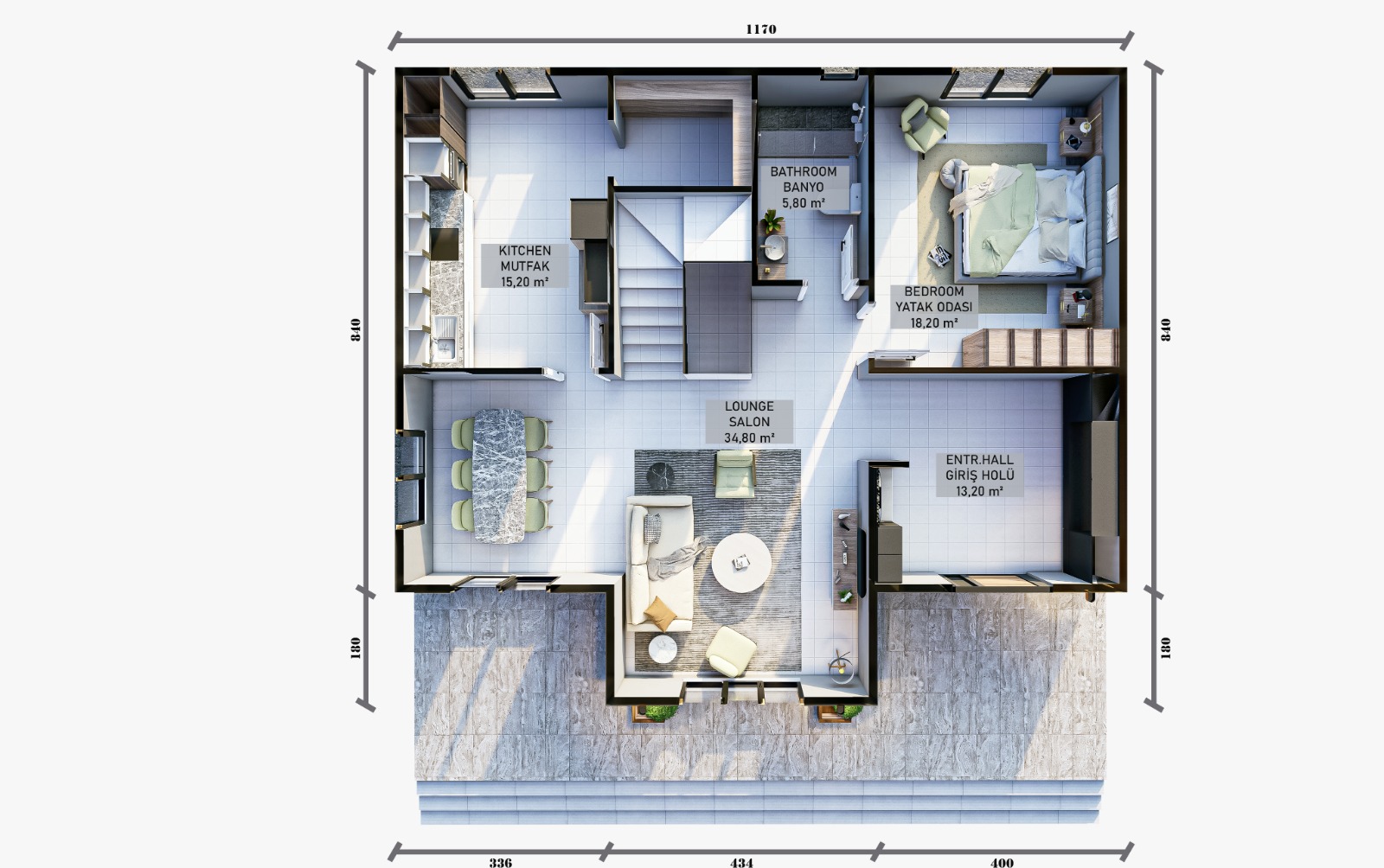 230 m²’lik 4+1 dubleks çelik ev modeli, yüksek mühendislik gücüyle tasarlanmış, modern mimari çizgilere sahip geniş bir yaşam alanı sunar