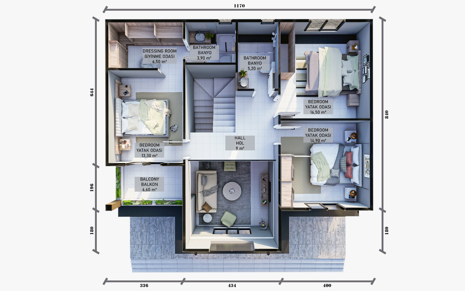 230 m²’lik 4+1 dubleks çelik ev modeli, geniş aileler için hem estetik hem de fonksiyonel bir yaşam çözümüdür. Alt katta ferah bir salon, geniş mutfak, banyo ve veranda alanı bulunurken; üst katta dört yatak odası, ebeveyn banyosu ve balkon yer alır. Modern plan yerleşimi, yüksek tavan yapısı ve geniş pencereleriyle iç mekanlarda doğal ışığı maksimum düzeyde kullanır. Şık dış cephe tasarımı ve zarif detaylarıyla hem şehir hem doğa ortamlarında mükemmel bir uyum sağlar.