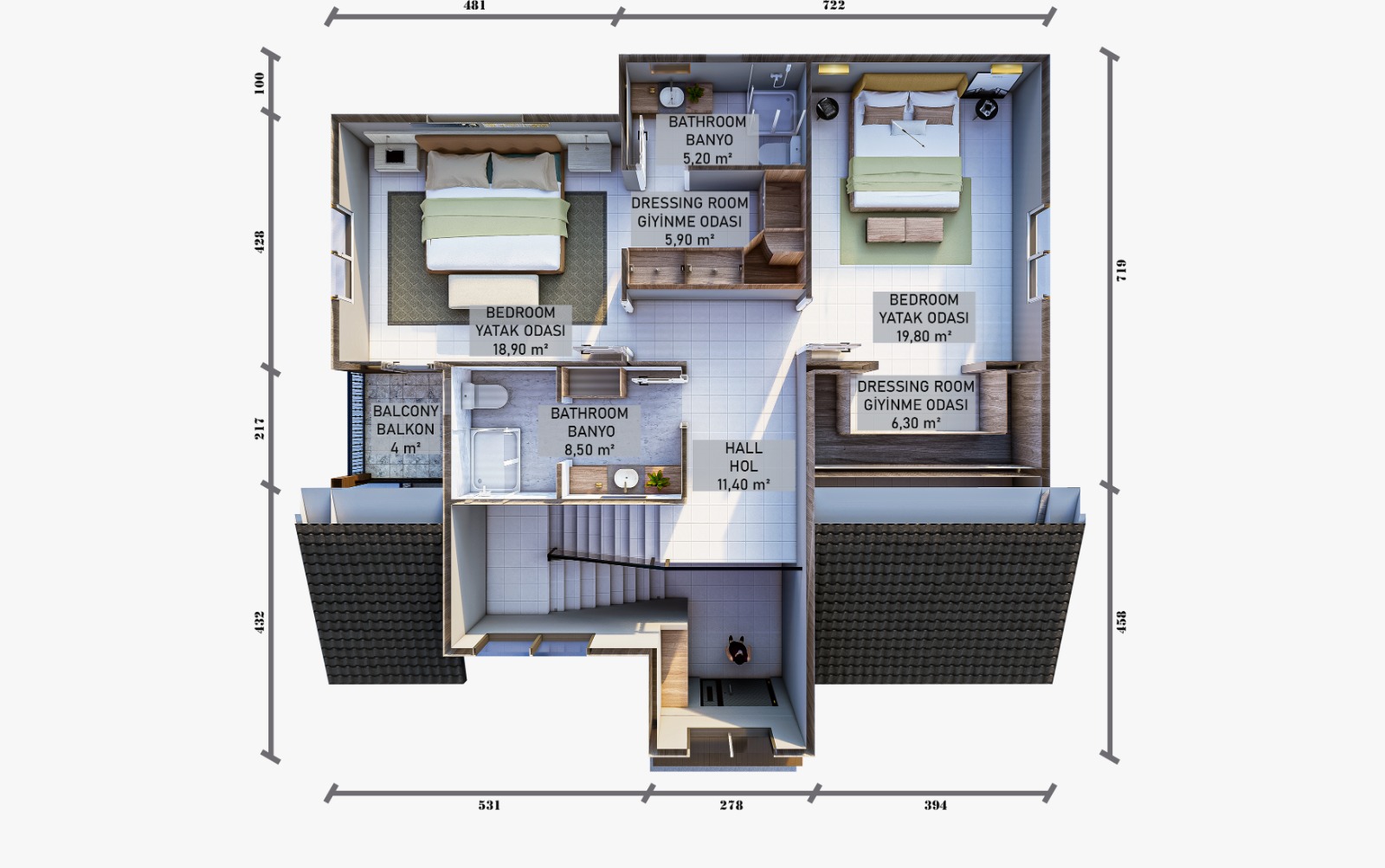 240 m²’lik 3+1 dubleks çelik ev modeli, ferahlığı, modern tasarımı ve işlevsel planıyla aileler için konforlu bir yaşam alanı sunar. Alt katta geniş salon, mutfak, banyo ve veranda alanı; üst katta ise üç yatak odası, ebeveyn banyosu ve balkon bölümü yer alır. Yüksek tavanlı salonu, geniş pencereleri ve dengeli plan düzeni sayesinde gün ışığıyla dolu, huzurlu bir iç atmosfer oluşturur. Hem şehir dışında kalıcı konut hem de villa tipi yazlık yaşam için ideal bir çözümdür.